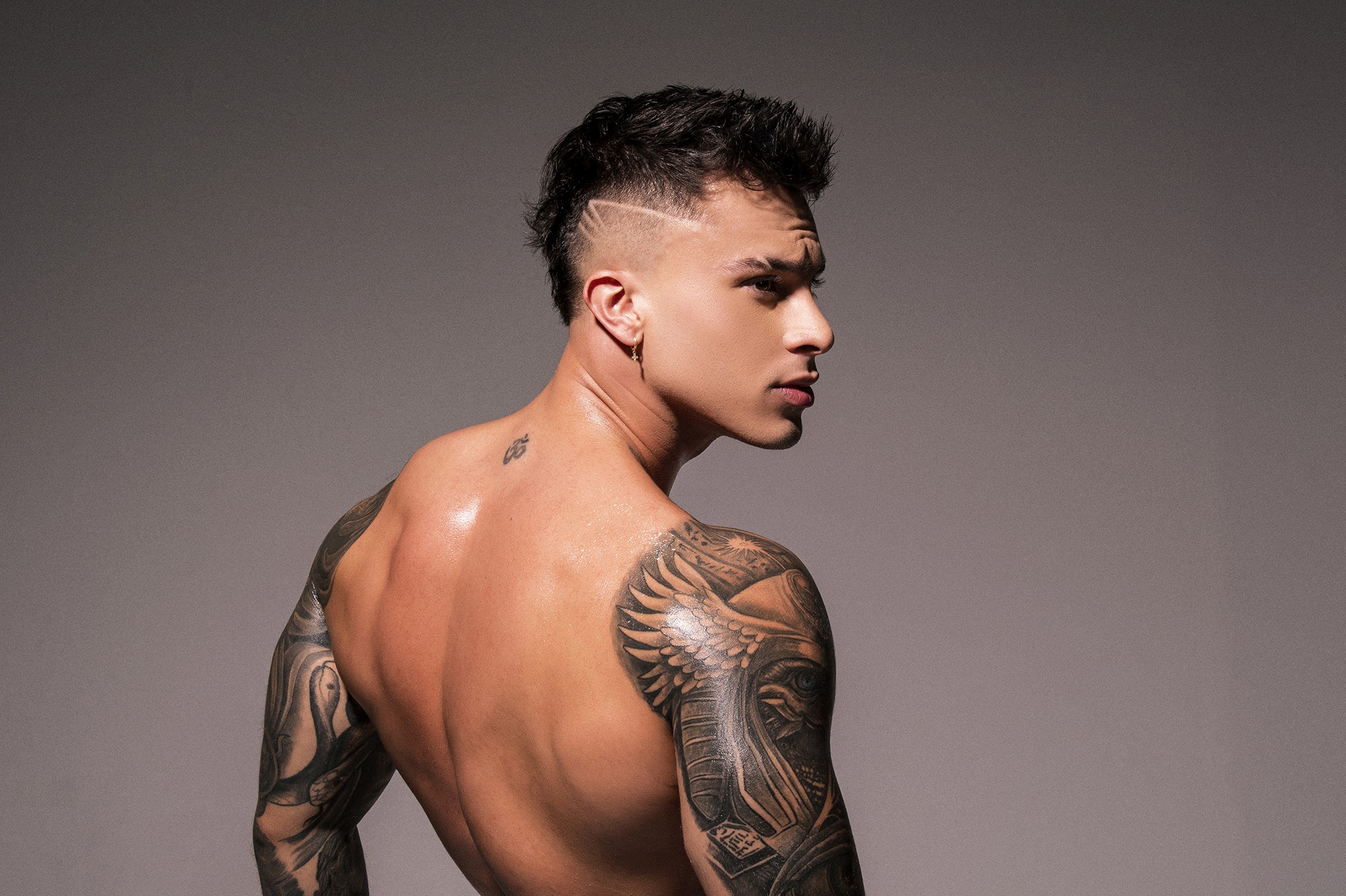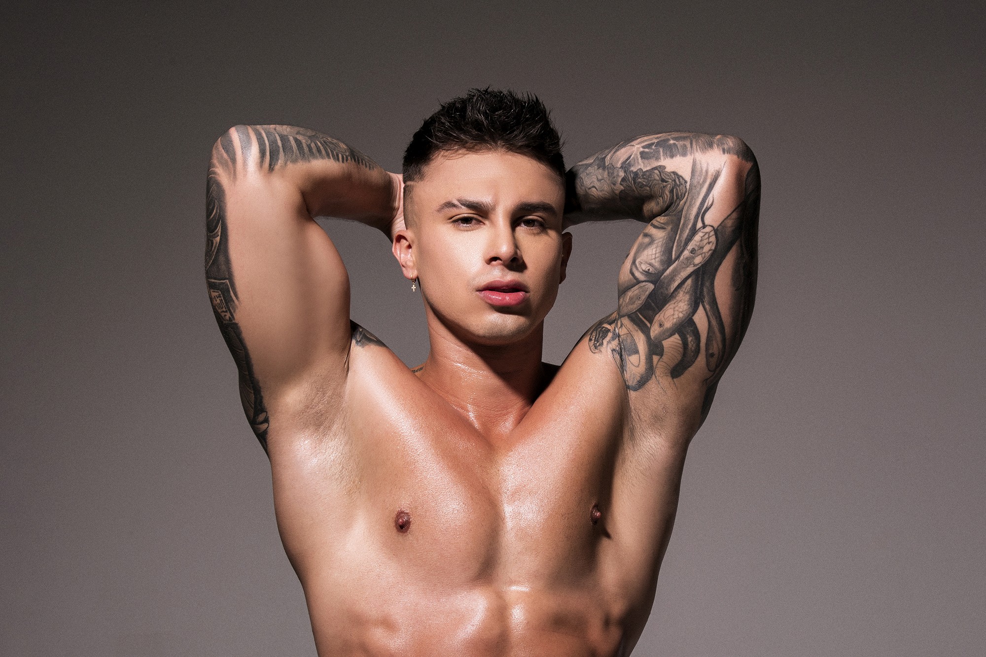 En la producción editorial 2024, Belami Colton proyecta una masculinidad contemporánea marcada por definición, control y presencia escénica, consolidando su imagen dentro del portafolio internacional de TWC.