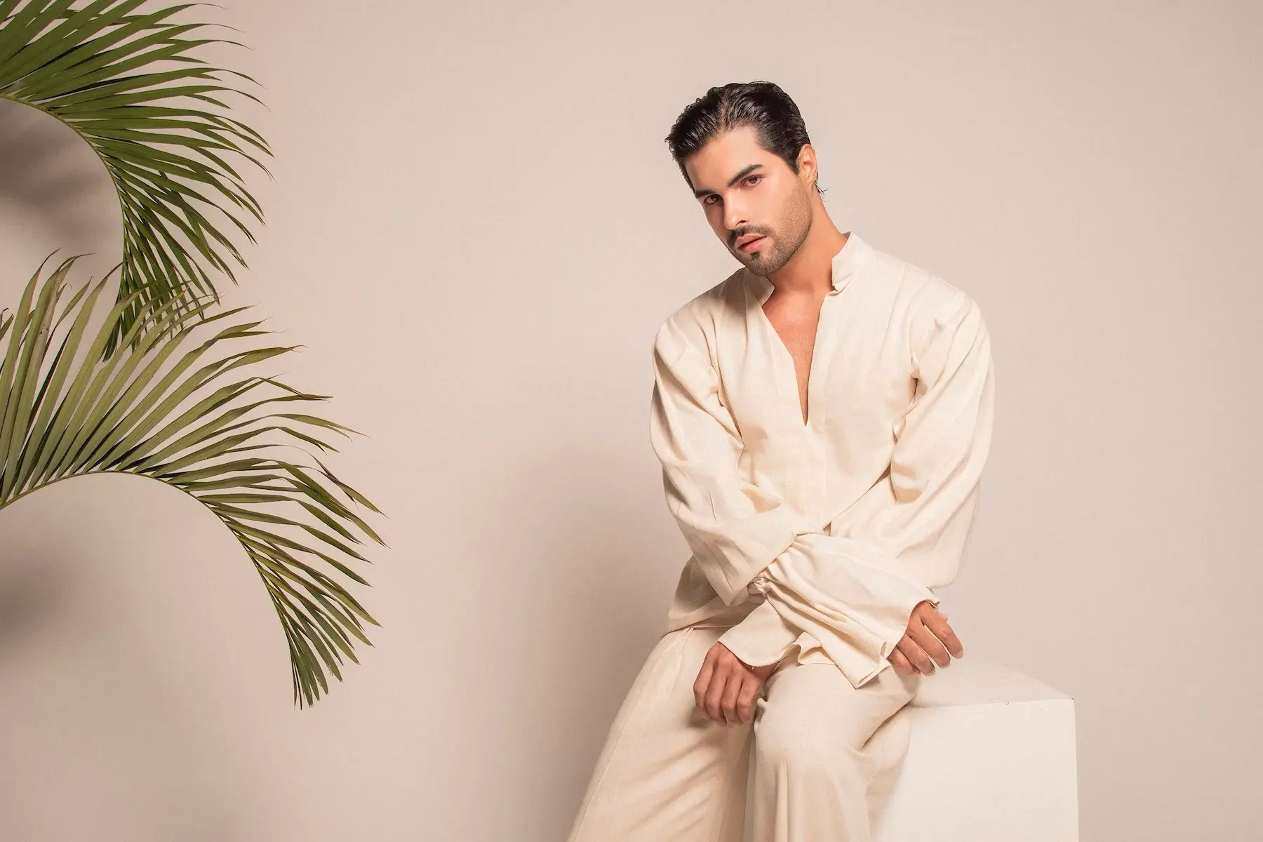 La presencia serena de Nathan Gael marca esta sesión de otoño con una estética limpia, refinada y profundamente contemporánea. Con su mirada introspectiva, rasgos suaves y una elegancia natural que no necesita esfuerzo, Nathan encarna un estilo minimalista que se siente moderno y atemporal. Las siluetas fluidas en tonos claros, la luz difusa característica de Salvador Francois y los acentos cálidos de palmeras crean un ambiente sutil y armonioso donde cada gesto resalta su porte tranquilo y sofisticado. La producción combina moda relajada y narrativa visual delicada, celebrando la esencia contemplativa y el magnetismo silencioso que definen la identidad de Nathan dentro del sello editorial de TWC.